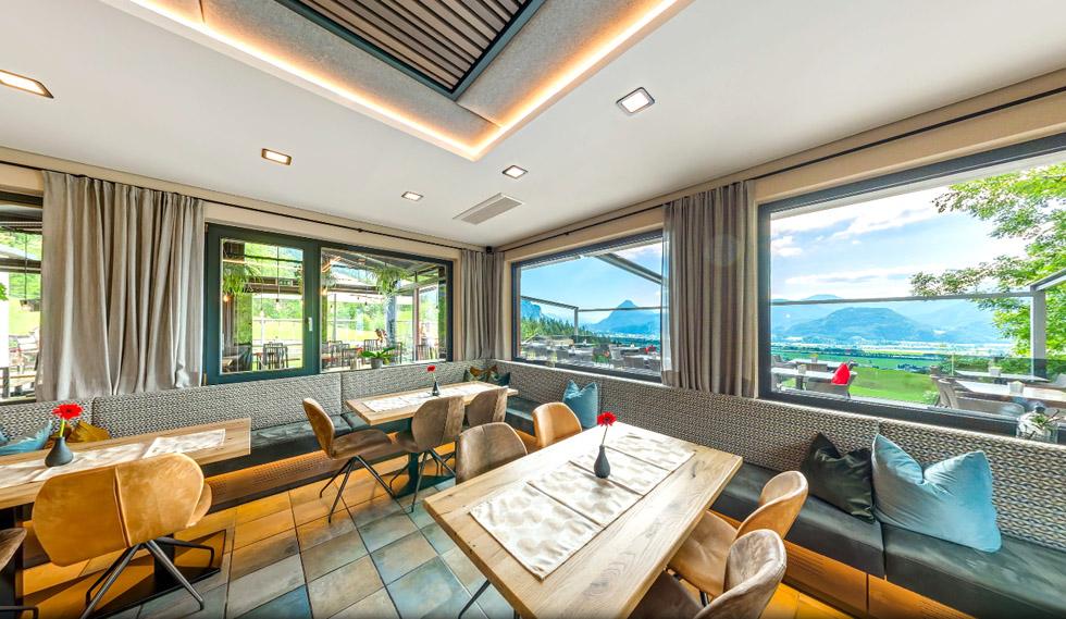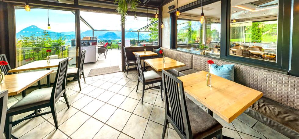 Auch in den Räumlichkeiten im Haus ist die Zeit nicht stehengeblieben. Im Wintergarten, welcher 2018 neu gestaltet wurde, haben ca. 32 Personen Platz. Im Lokal und Barbereich, den wir 2019 erneuert haben, finden ca. 40 und 12 Personen Platz.